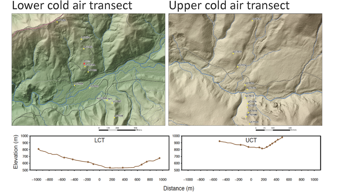 Animations of hourly temperature measured along the lower (LCT) and upper (UCT) cold-air transects