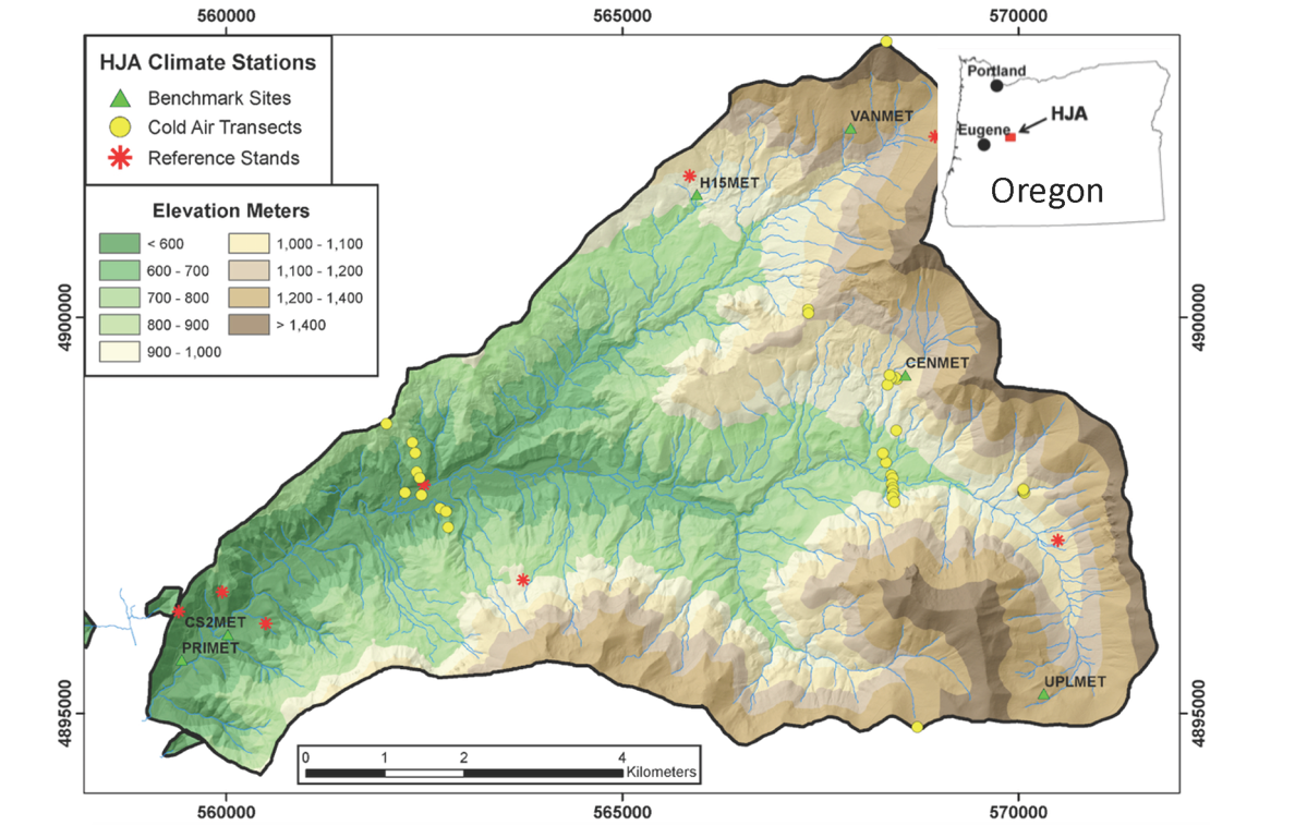 Rupp, D. E., Shafer, S. L., Daly, C., Jones, J. A., & Frey, S. J. K. (2020). Temperature gradients and inversions in a forested Cascade Range basin: Synoptic- to local-scale controls. J. Geophys. Res. Atmos. x(x). xx-xx. https://doi.org/10.1029/2020JD032686